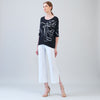 Loose Cut Half Sleeve Top - Floral Outline